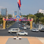 Phnom Penh, the captial city of Cambodia. A cacophony of driving, walking, food stalls, electrical wiring and shopping.