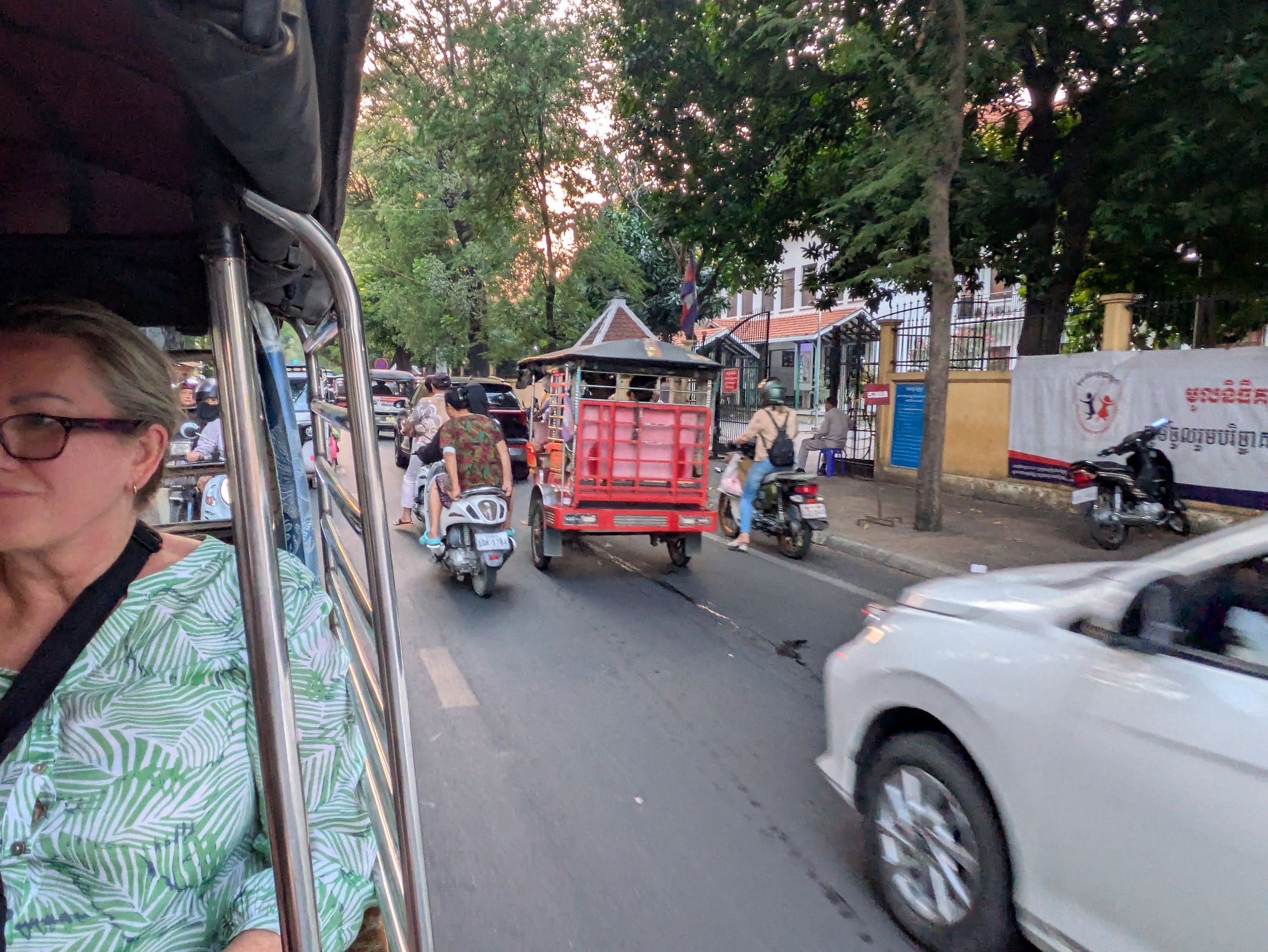 Sights around town, including The Royal Palace of Phnom Penh where you knew the day of the week by the color that was worn. Amazing sounds and sights.