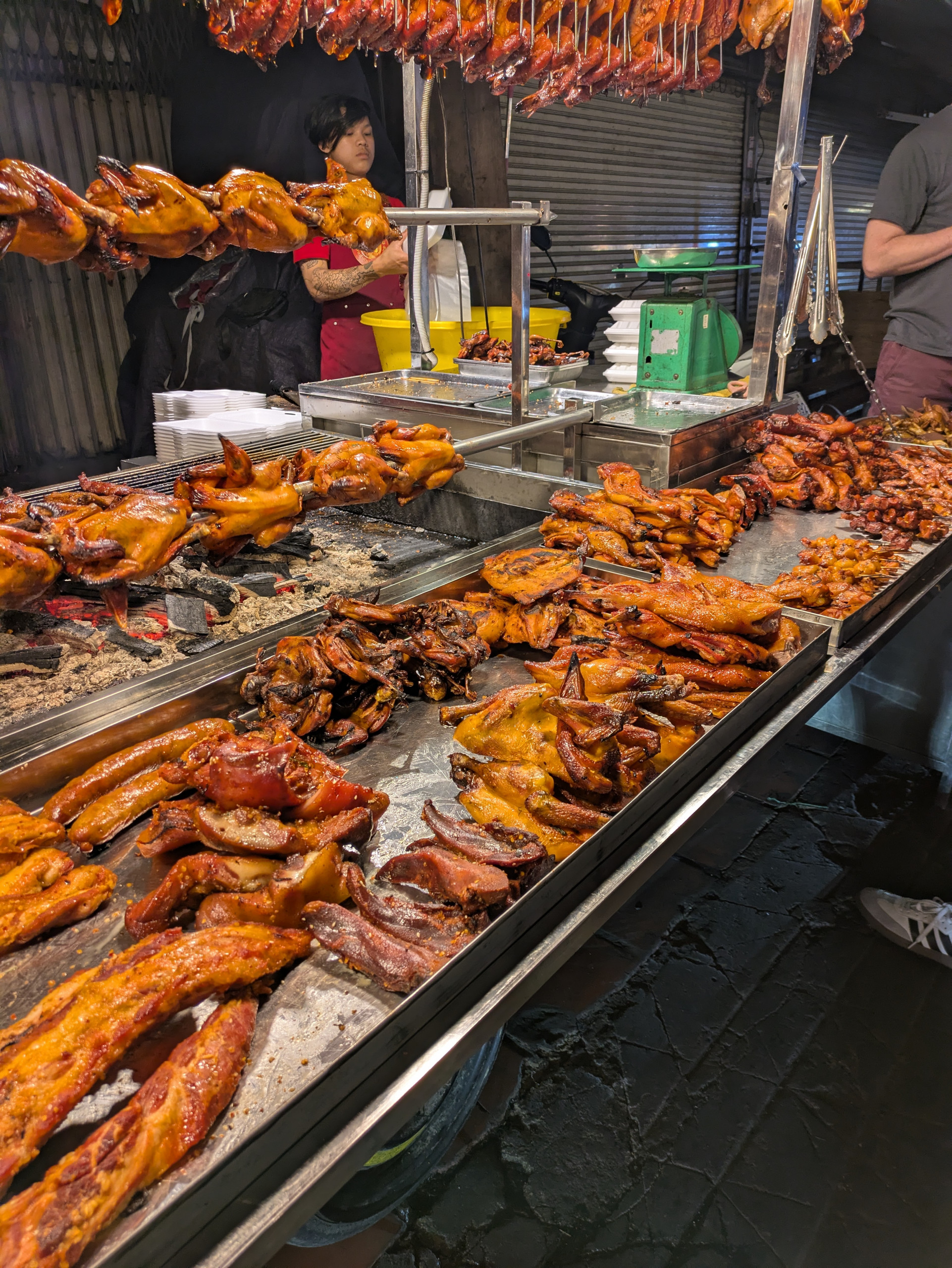 Phnom Penh, the captial city of Cambodia. A cacophony of driving, walking, food stalls, electrical wiring and shopping.